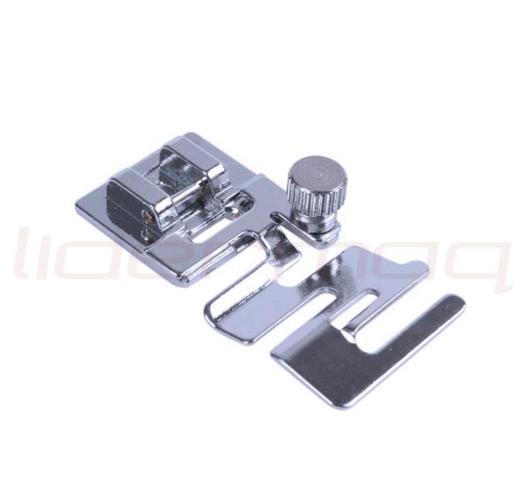 Base prensatela pega cinta o elástico. Encastre ancho adaptable a cualquier modelo de maquina familiar.